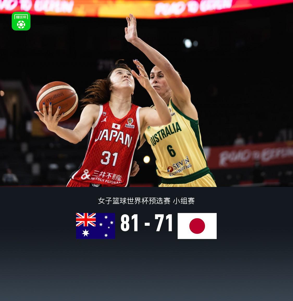 北京时间3月12日女子篮球世界杯预选赛 小组赛,澳大利亚女篮对阵日本女篮。半场澳大利亚女篮38-47日本女篮,第四节澳大利亚打出23-4的单节得分,最终澳大利亚女篮81-71逆转日本女篮。